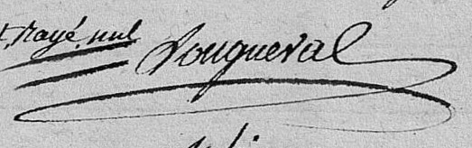 L'an mil huit cent vingt quatre, le lundi quinze du mois de novembre, dix heures du matin ; Pardevant nous adjoint faisant pour monsieur le maire les fonctions d'officier de l'État Civil de la commune de Saint Mars d'Outillé, canton d'Écommoy,département de la Sarthe ; Sont comparus pour contracter mariage, d'une part, Mr Théodore Charles de LONGUEVAL, âgé de vingt sept ans, né commune de Beaumont, canton de Chinon, département d'Indre et Loire, le onze vendémiaire l'an six,domicilié commune d'Avoine, canton dudit Chinon, garçon majeur, propriétaire, fils de deffunt Sieur François Gabriel Étienne de LONGUEVAL, ancien page du Roi, décédé dite commune d'Avoine, le vingt deux fructidor l'an huit, et de dame EdméeDorothée COURTIN, sa veuve, ci présente et consentante, aussi domiciliée dite commune d'Avoine ; D'autre part, demoiselle Louise Joséphine de LONGUEVAL d'HARAUCOURT, âgée de vingt neuf ans et neuf mois, née dans cette commune le vingt neufpluviose l'an douze, y demeurante, fille mineure issue de Mr Louis Charles Marie de LONGUEVAL d'HARAUCOURT, Capitaine de Cavalerie, Chevalier de Saint Louis et Maire de cette commune, et de dame Louise Marie Jeanne BAILLY de SAINT MARS, tousdeux ci présens et consentans, domiciliés dans cette commune ; Le tout constaté tant par les pièces qui nous ont été présentées duement en forme, que par l'acte minute déposée au bure au de cette mairie ; Lesquels nous ont requis de procéder àla célébration du mariage projeté entre eux et dont les publications ont été faites tant dans cette commune que dans celle d'Avoine, les dimanches trente et un octobre dernier et sept du présent mois, suivant le certificat qui nous ont étéreprésentés sous la date du neuf du présent mois et signé BOISNIER, maire dudit Avoine ; Aucune opposition audit mariage ne nous ayant été signifiée, faisant droit à leur réquisition, a près avoir donné lecture des pièces ci dessus mentionnées,et du chapitre six du code civil intitulé du mariage, j'ai demandé au futur époux et à la future épouse s'ils veulent se prendre pour mari et pour femme, chacun d'eux ayant répondu séparément et affirmativement, déclarons au nom de la loi queMonsieur Théodore Charles de LONGUEVAL et demoiselle Louise Joséphine de LONGUEVAL d'HARAUCOURT sont unis par le mariage ; de quoi avons dressé acte, en présence de Mr Henry Edme Joseph QUIRIT de COULAINE, prêtre, curé de Beaumont, départementd'Indre et Loire, âgé de soixante quatorze ans, ami des époux, de Mr Augustin Pierre QUIRIT de COULAINE, Chevalier de l'ordre Royal et militaire de St Louis, Major d'infanterie, âgé de soixante huit ans, oncle maternel de l'époux, domiciliésdite commune de Beaumont, de Mr Charles Gabriel MESNARD de SEILLAC, propriétaire et adjoint du Grand Lucé, âgé de quarante quatre ans, oncle paternel du futur, et de Mr Charles de LONGUEVAL des FORGES, propriétaire, oncle paternel de l'époux,demeurant ville de Paris, âgé de soixante douze ans ; D'après lecture faite aux dits époux, pères, mères et témoins, ils ont tous signés avec nous,