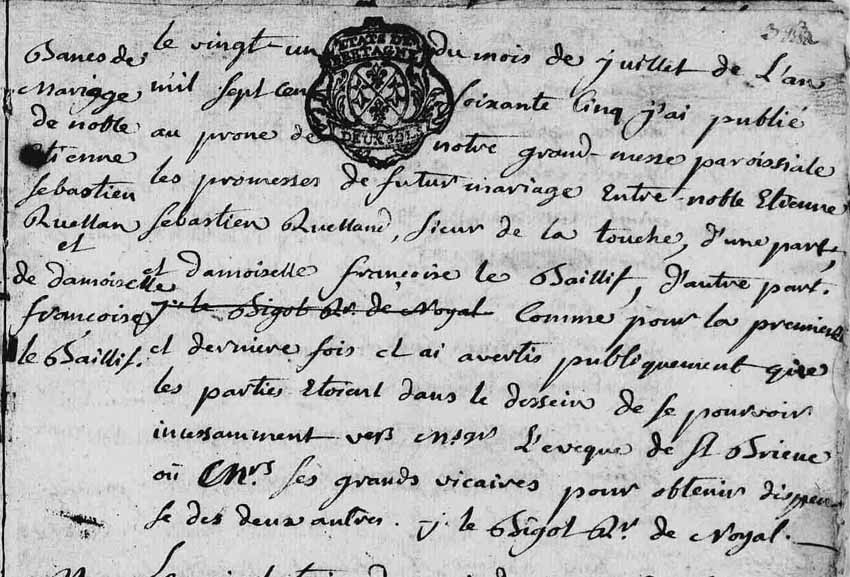Publication : État-civil en ligne des Archives départementales des Côtes-d'Armor. Détails de la citation : État-civil de Noyal – BMS-1748-1792, image 104. | | Bans de mariage | 21 juillet 1765