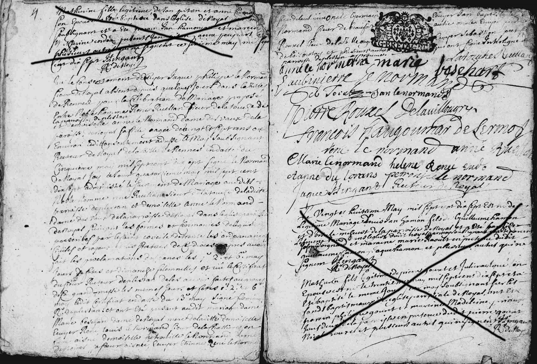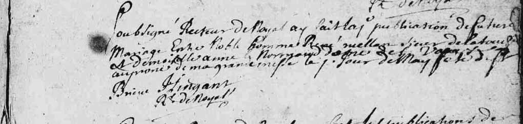Publication : État-civil en ligne des Archives départementales des Côtes-d'Armor. Détails de la citation : État-civil de Noyal – BMS-1701-1747, image 46.