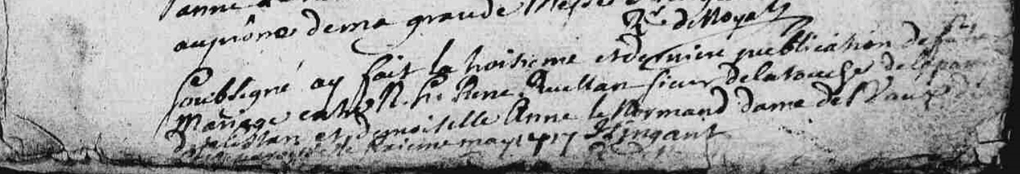 Publication : État-civil en ligne des Archives départementales des Côtes-d'Armor. Détails de la citation : État-civil de Noyal – BMS-1701-1747, image 46. | | Bans de mariage | 1 mai 1717