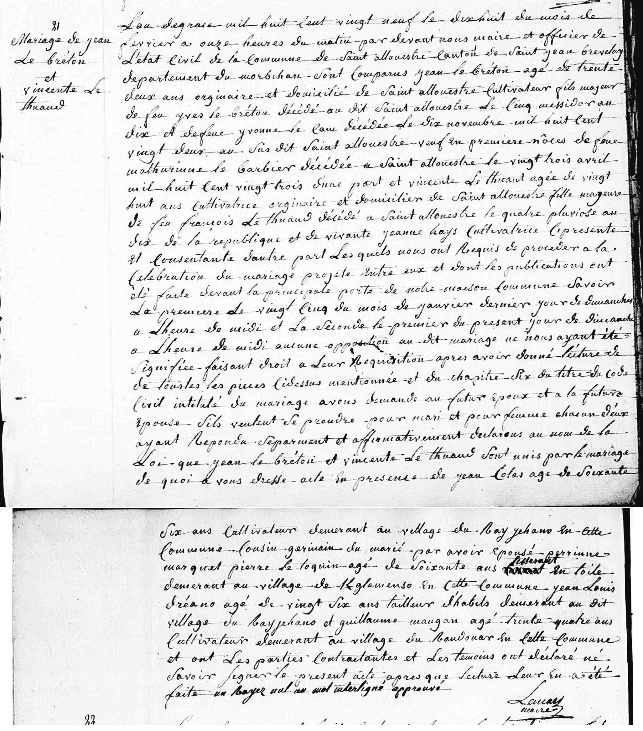 Jean Le BRETONNaissance : 27 août 1796 32 32 — St-Allouestre, Morbihan, Bretagne, France Décès : |