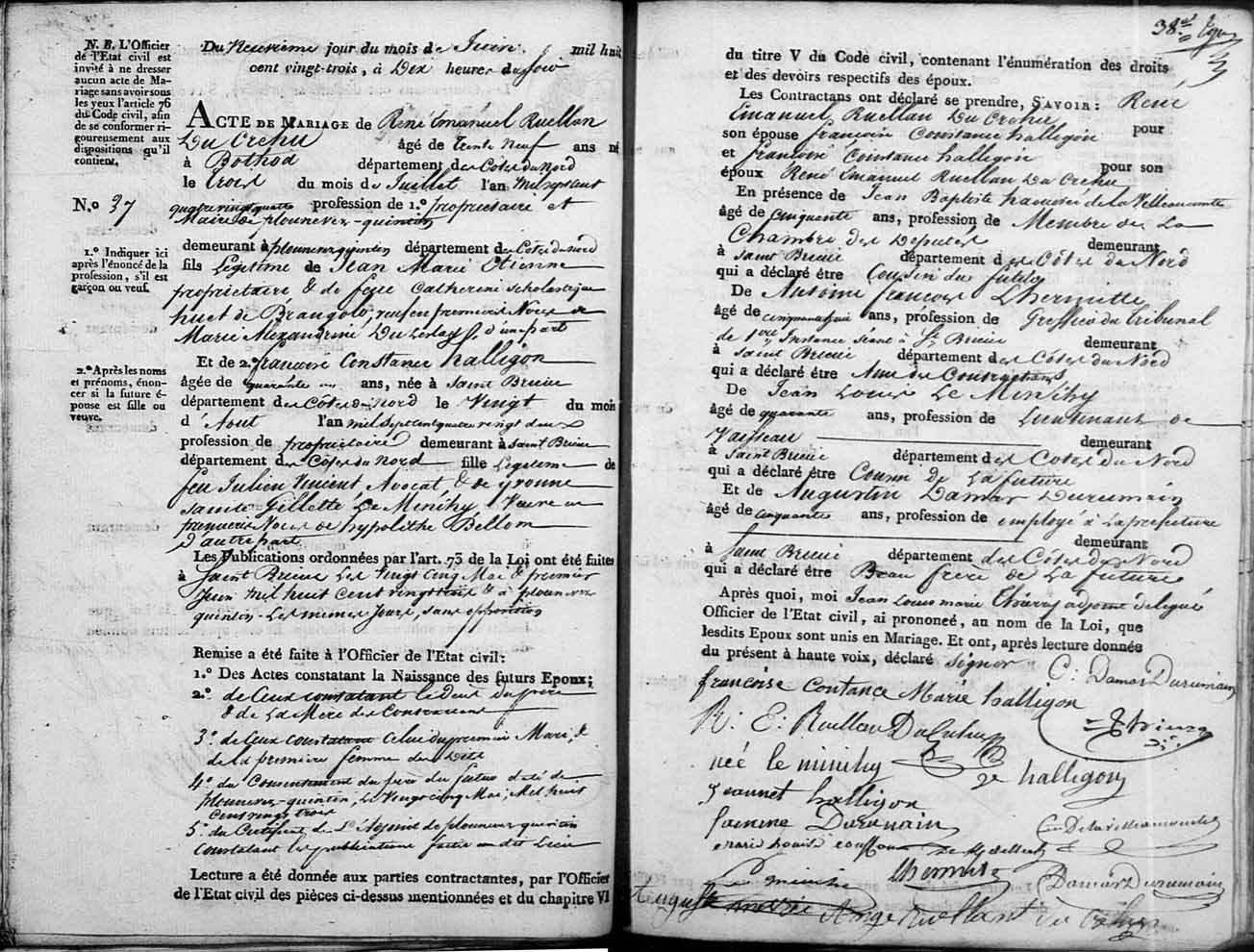 René Emmanuel RUELLAN du CRÉHUNaissance : 3 juillet 1784 30 26 — St-Nicolas-du-Pélem, Côtes-d'Armor, Bretagne, France Décès : 20 avril 1857 — Lamballe, Côtes-d'Armor, Bretagne, France |