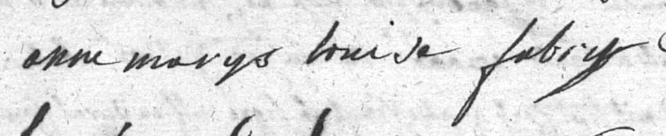 | François Philippe Joseph FABRYNaissance : 19 mars 1746 36 19 — Brest, Finistère, Bretagne, France Décès : 19 mars 1746 — Brest, Finistère, Bretagne, France | | Jeanne Renée FABRYNaissance : 11 septembre 1748 38 22 — Brest, Finistère, Bretagne, France Décès : | Bernard François FABRYNaissance : 24 septembre 1749 39 23 Décès : 30 octobre 1751 — Brest, Finistère, Bretagne, France | | Marie Gabrielle FABRYNaissance : 9 avril 1752 42 25 Décès : 4 juillet 1822 — Brest, Finistère, Bretagne, France | Julien Onézime FABRYNaissance : 6 novembre 1753 43 27 — Brest, Finistère, Bretagne, France Décès : 10 octobre 1816 — St-Brieuc, Côtes-d'Armor, Bretagne, France | | Anne Marie Louise FABRYNaissance : 23 avril 1757 47 30 — Brest, Finistère, Bretagne, France Décès : 19 octobre 1818 — Brest, Finistère, Bretagne, France | | Marie Jacquette Suzanne FABRYNaissance : 15 septembre 1767 57 41 — Brest, Finistère, Bretagne, France Décès : 20 juin 1794 — Brest, Finistère, Bretagne, France |