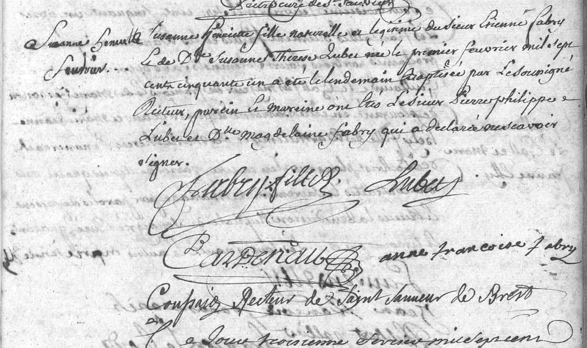 | | Note | Voir aux Archives départementales du Finistère (Brest), cote B 2511 : Tutelle des enfants de Jean Étienne FABRY, Commis principal des Vivres de la Marine, et de Thérèse Suzanne LUBET, le 8 octobre 1771. | | Source | 29_AD_DIVERS_BREST Publication : Documents divers provenant des Archives départementales du Finistère (Brest). Détails de la citation : B 2511. | | Dernière modification | 21 septembre 2019 – 15:57:56
