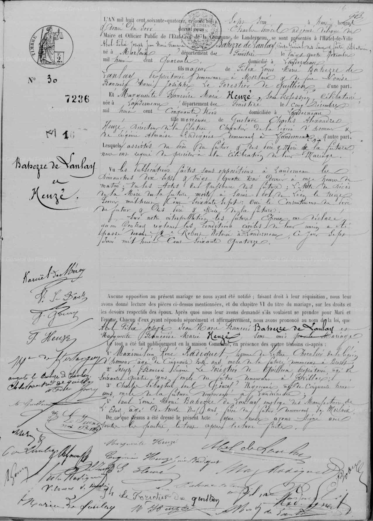 Publication : État-civil en ligne des Archives départementales du Finistère. Détails de la citation : État-civil de Landerneau – 1 MI EC 126/13 – M-1868-1885, image 207. | | Dernière modification | 7 février 2020 – 19:00:29