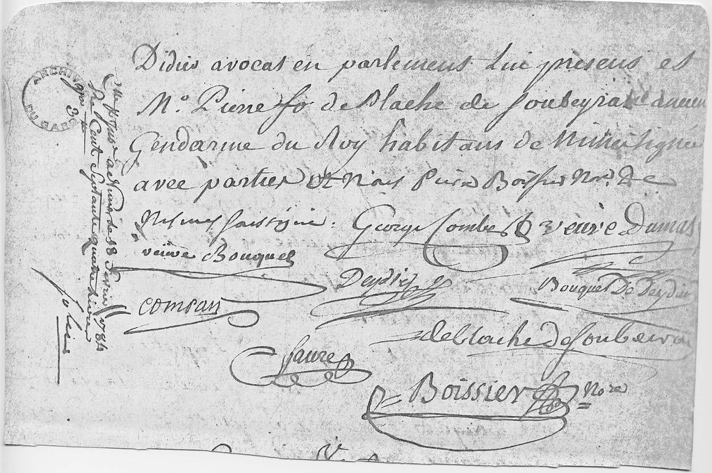 Publication : Documents divers provenant des Archives départementales du Gard. Détails de la citation : II E 37-351 – Me Pierre Boissier, Notaire. | | Mariage | février 1784