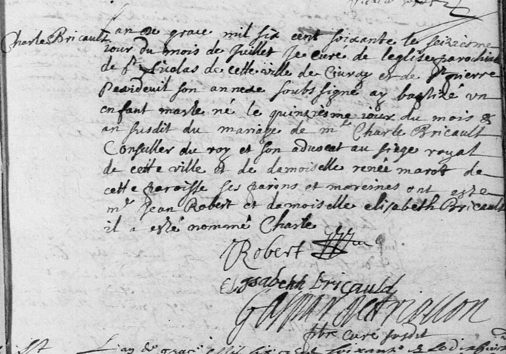 Acte de baptême de Charles Bricault. - Civray (86), Saint-Nicolas, 16 juillet 1660.