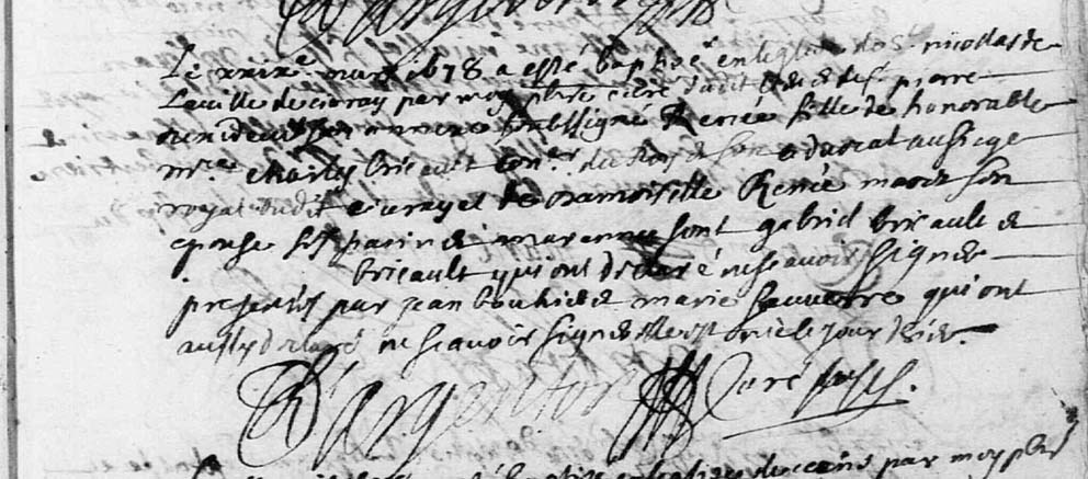 Acte de baptême de Renée Bricauld. - Civray (86), Saint-Nicolas, 29 mars 1678.