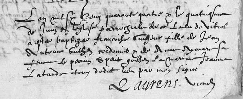 Acte de baptême de Françoise Guilhen, Vitrolles (13), 4 juin 1644
