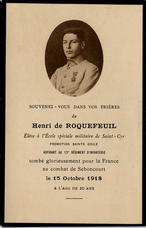 | Image mortuaire de Henri de Roquefeuil-Cahuzac, tombé au combat de Séboncourt, à Étaves-et-Bocquiaux (02) - 15 octobre 1918. | 1 | 0 | 0 | June 15, 2019 - 3:50:00 p.m. |