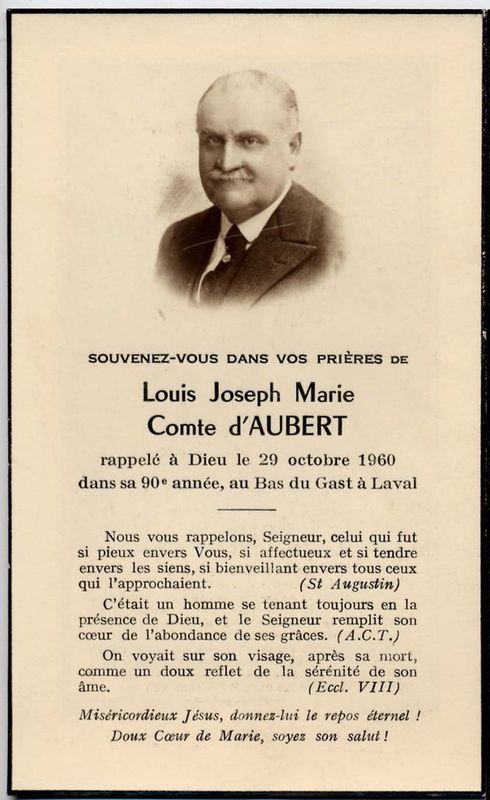 | Image mortuaire de Louis Joseph Marie d'Aubert, au Bas-du-Gast, à Laval (53) - 29 octobre 1960. | 1 | 0 | 0 | January 11, 2019 - 3:28:35 p.m. |