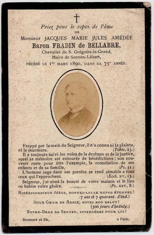 | Image mortuaire de Jacques Marie "Jules" Amédée Fradin de Bellabre - 1er mars 1890. | 1 | 0 | 0 | June 13, 2019 - 9:00:22 a.m. |