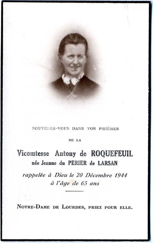 | Image mortuaire de Jeanne Marie Josèphe du Périer de Larsan - 20 décembre 1944. | 1 | 0 | 0 | June 15, 2019 - 3:54:10 p.m. |