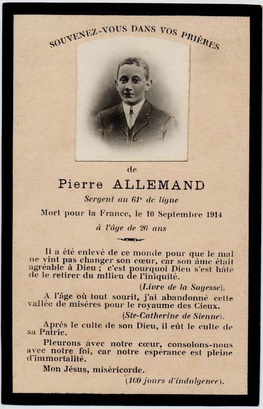 | Image mortuaire de Pierre Marie Henri Allemand - 10 septembre 1914. | 1 | 0 | 0 | June 15, 2019 - 4:08:01 p.m. |