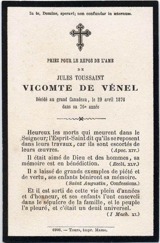 | Image mortuaire de Jules Toussaint de Venel - Le Canadeau, au Beausset (83) - 29 avril 1876. | 1 | 0 | 0 | June 15, 2019 - 3:55:55 p.m. |