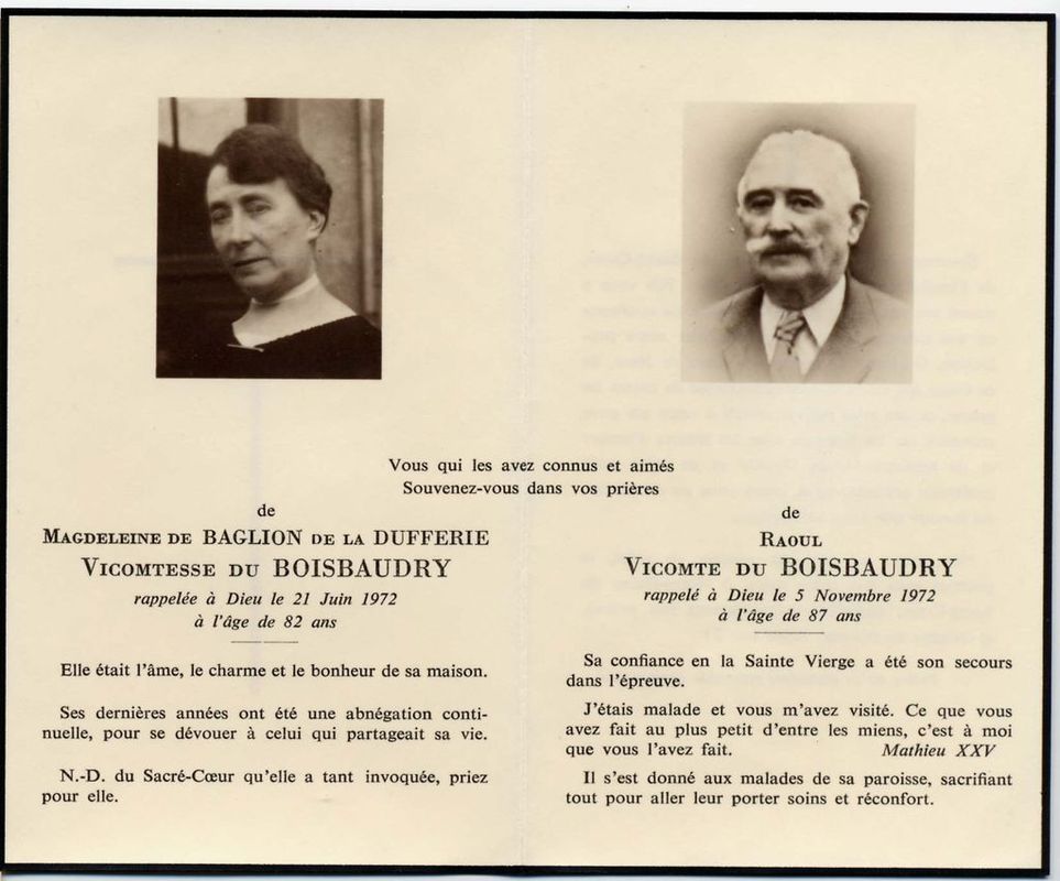 | Image mortuaire de Madeleine de Baglion de La Dufferie (21 juin 1972) et Raoul du Boisbaudry (5 novembre 1972). | 2 | 0 | 0 | June 15, 2019 - 3:57:43 p.m. |