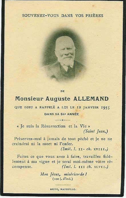 | Image mortuaire de Auguste Louis Antoine Allemand - 12 janvier 1935. | 1 | 0 | 0 | June 15, 2019 - 10:56:56 a.m. |