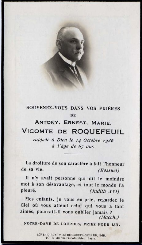 | Image mortuaire de Antony Ernest Marie de Roquefeuil-Montpeyroux - 14 octobre 1936. | 1 | 0 | 0 | June 15, 2019 - 10:56:35 a.m. |