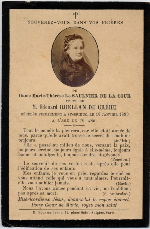 | Image mortuaire de Marie Le Saulnier de La Cour - Saint-Brieuc (22) - 18 janvier 1893. | 1 | 0 | 0 | June 15, 2019 - 4:03:26 p.m. |