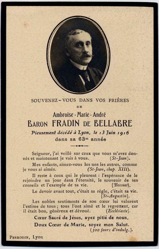 | Image mortuaire de Ambroise Marie André Fradin de Bellabre - Lyon (69) - 13 juin 1916. | 1 | 0 | 0 | June 15, 2019 - 10:55:21 a.m. |