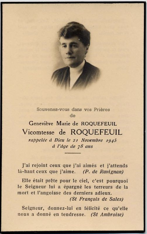 | Image mortuaire de Geneviève Marie Ernestine Gérasime de Roquefeuil-Bars - 21 novembre 1945. | 1 | 0 | 0 | June 15, 2019 - 11:02:50 a.m. |