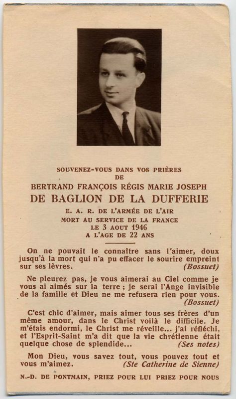 | Image mortuaire de Bertrand de Baglion de La Dufferie - 3 août 1946. | 1 | 0 | 0 | June 15, 2019 - 10:57:36 a.m. |
